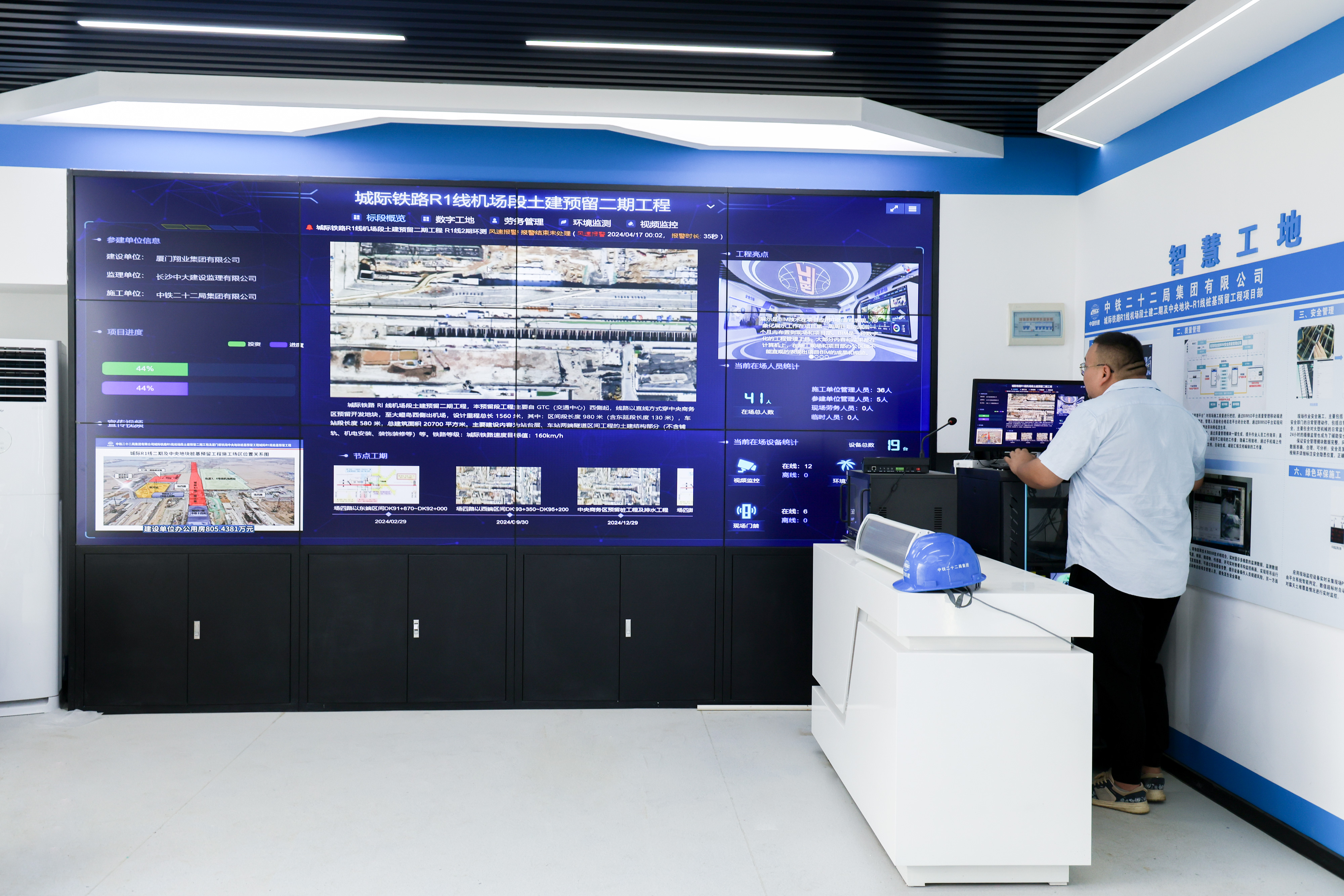 中铁二十二局厦门城际铁路R1线项目依托成熟的BIM智慧工地应用经验,深度融合智慧建造技术,实现对项目现场全过程管控。 许侨慰 摄 |  |