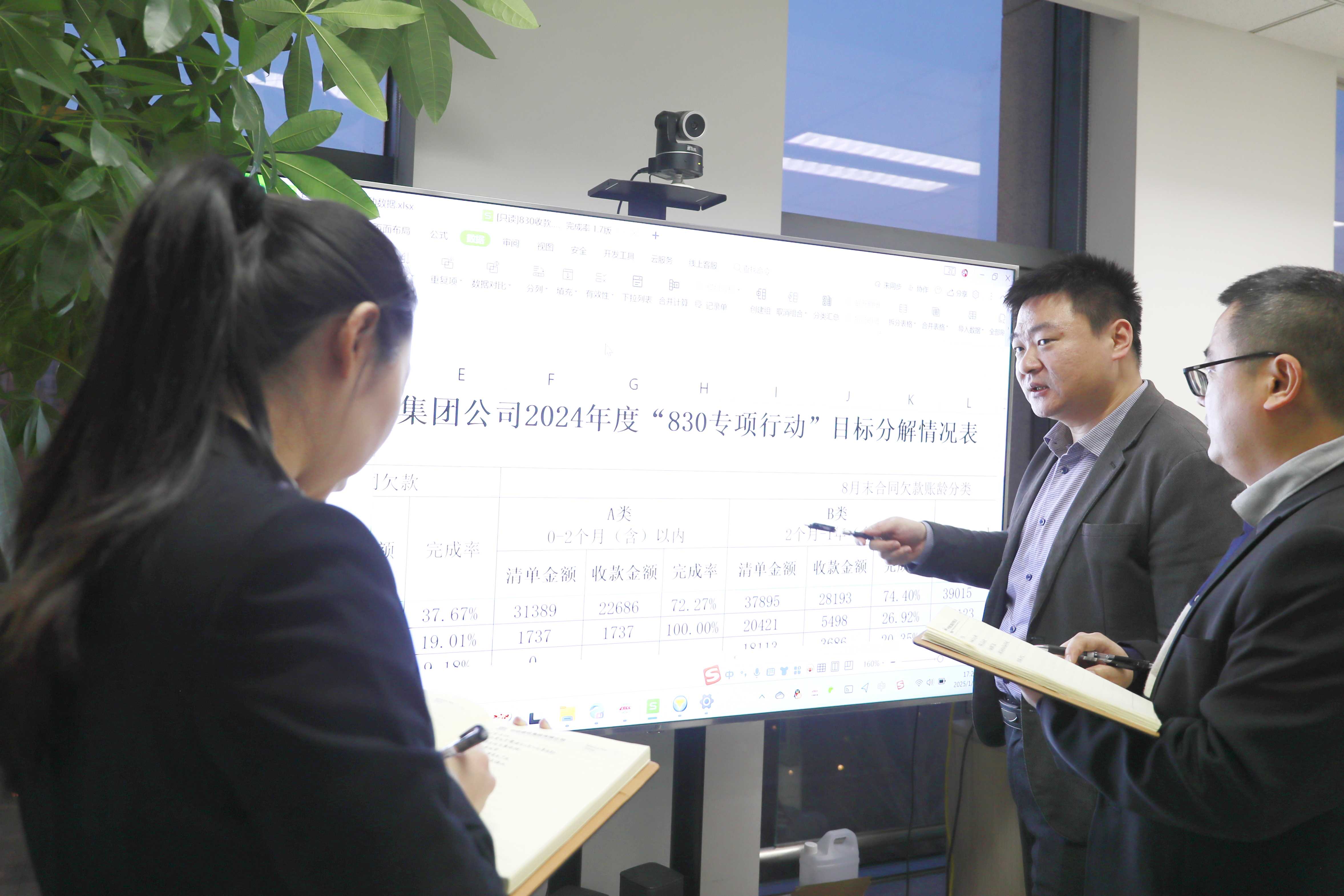 中铁建设连续6年开展“830”专项收款行动,债权管理中心督导所属单位每月收款情况,全力攻坚存量债权回收。 杨钦然 摄 |  |
