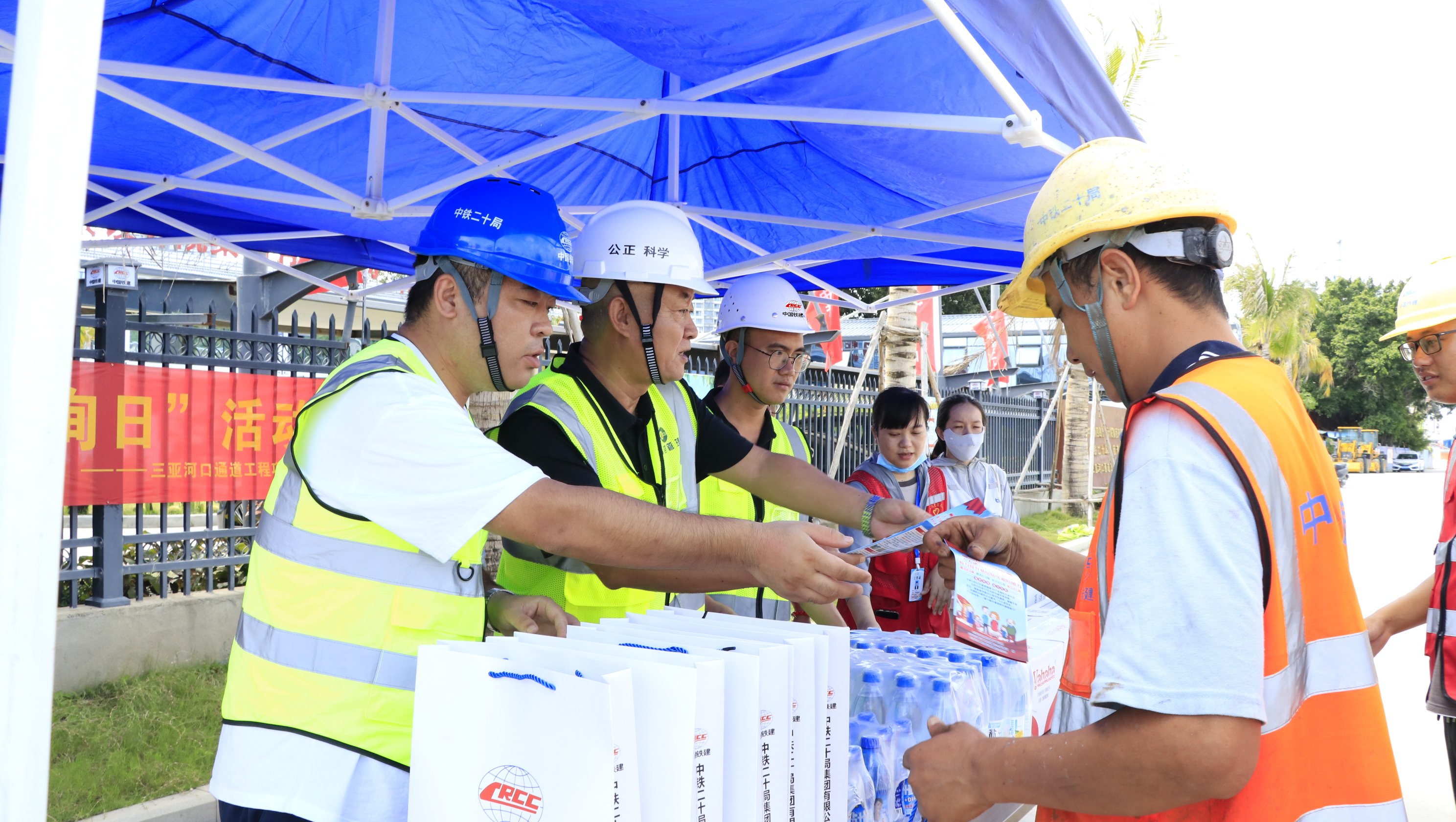中铁二十局三亚河口通道工程项目推出安全生产知识科普活动,不断织密安全生产防护网。图为项目部向一线建设者发放安全生产手册。 刘昭欣 供图 |  |