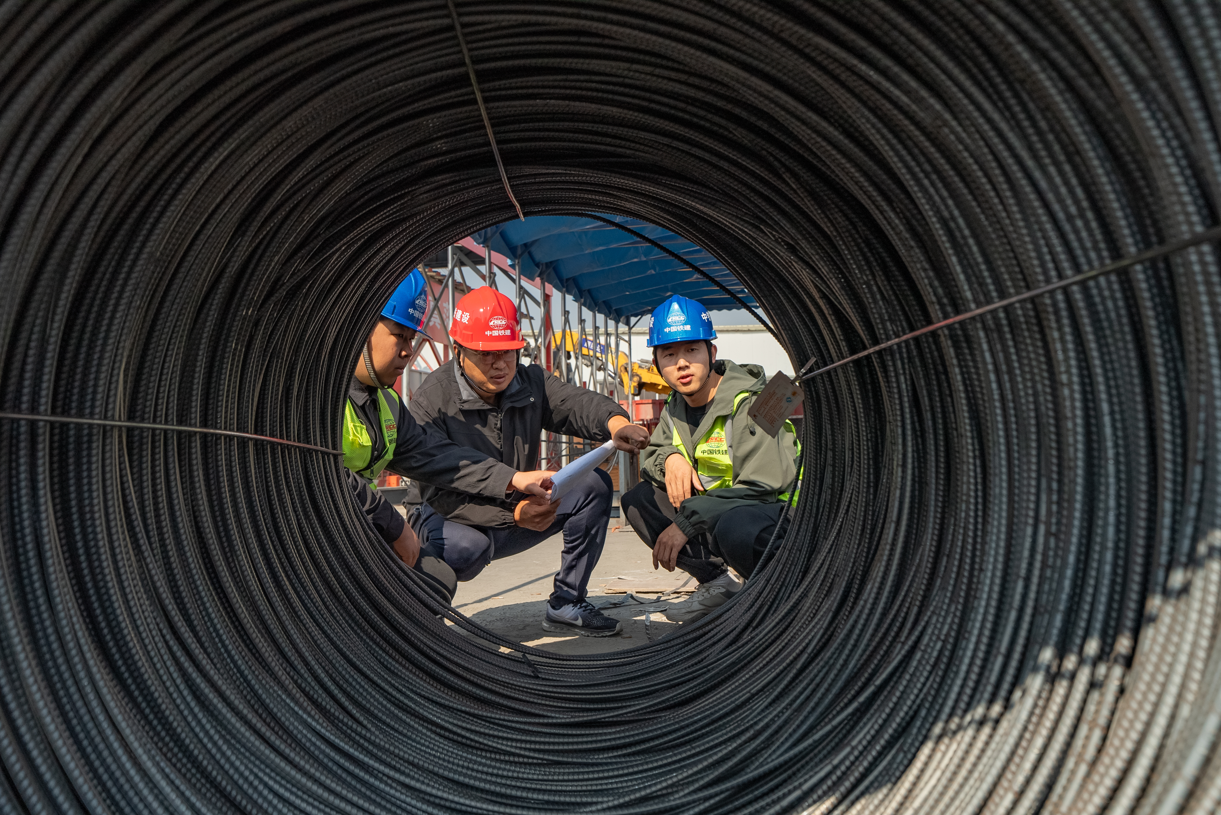 中铁建设南方公司持续探索完善“大监督”工作机制,以“四不两直”方式联动对项目关键岗位、关键环节开展监督检查,切实把“大监督”工作穿透到基层。图为公司纪检办公室组织在新建佛山站项目开展“大监督”检查,查看钢筋材料情况。 陈薪燃 摄 | 通讯员 李佳佳