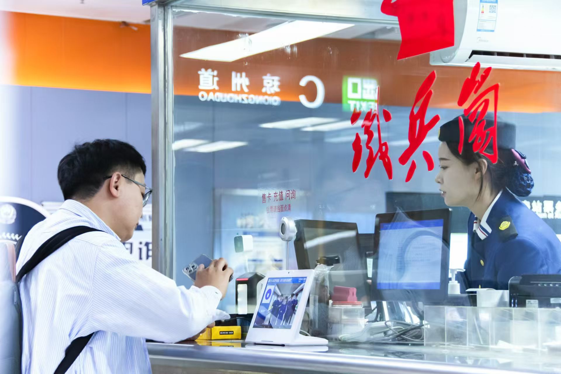 铁建交运天津1号线运营公司坚持将铁道兵精神与服务意识融合,在线路重点车站打造了党员先锋示范“铁兵岗”特色综合客服中心,努力为乘客创造更加安全、舒适、便捷的乘车环境。 董胜英 摄 |  |