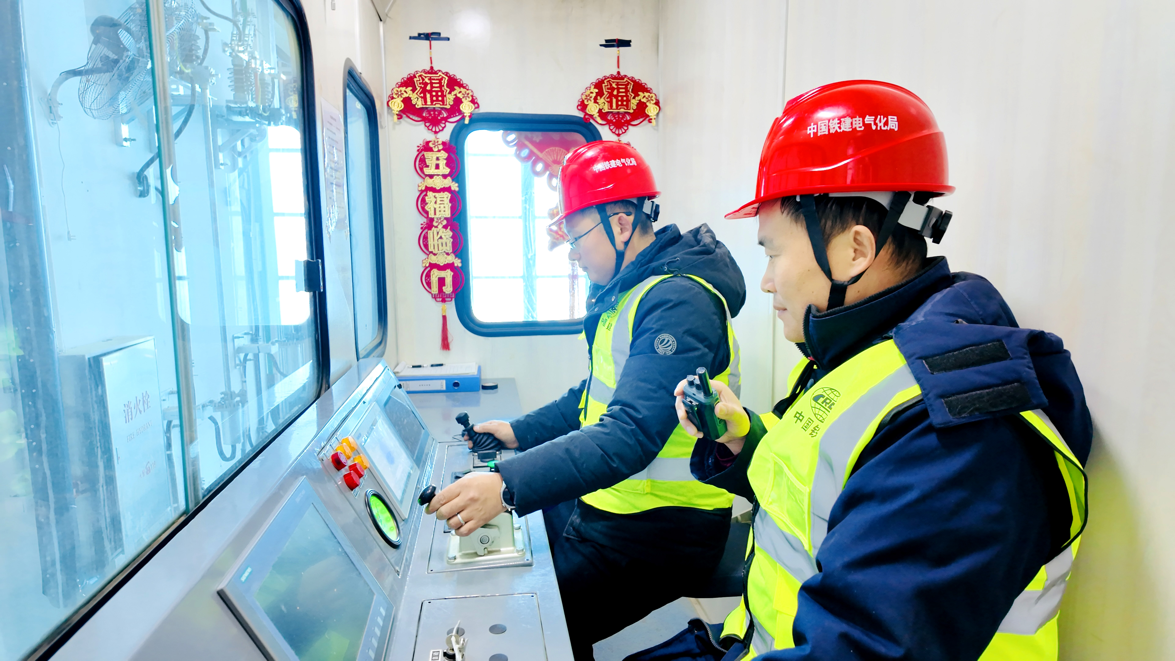 中国铁建电气化局建设者对轨道车进行调试。王 辉 摄 | 实干开新局 奋进春天里