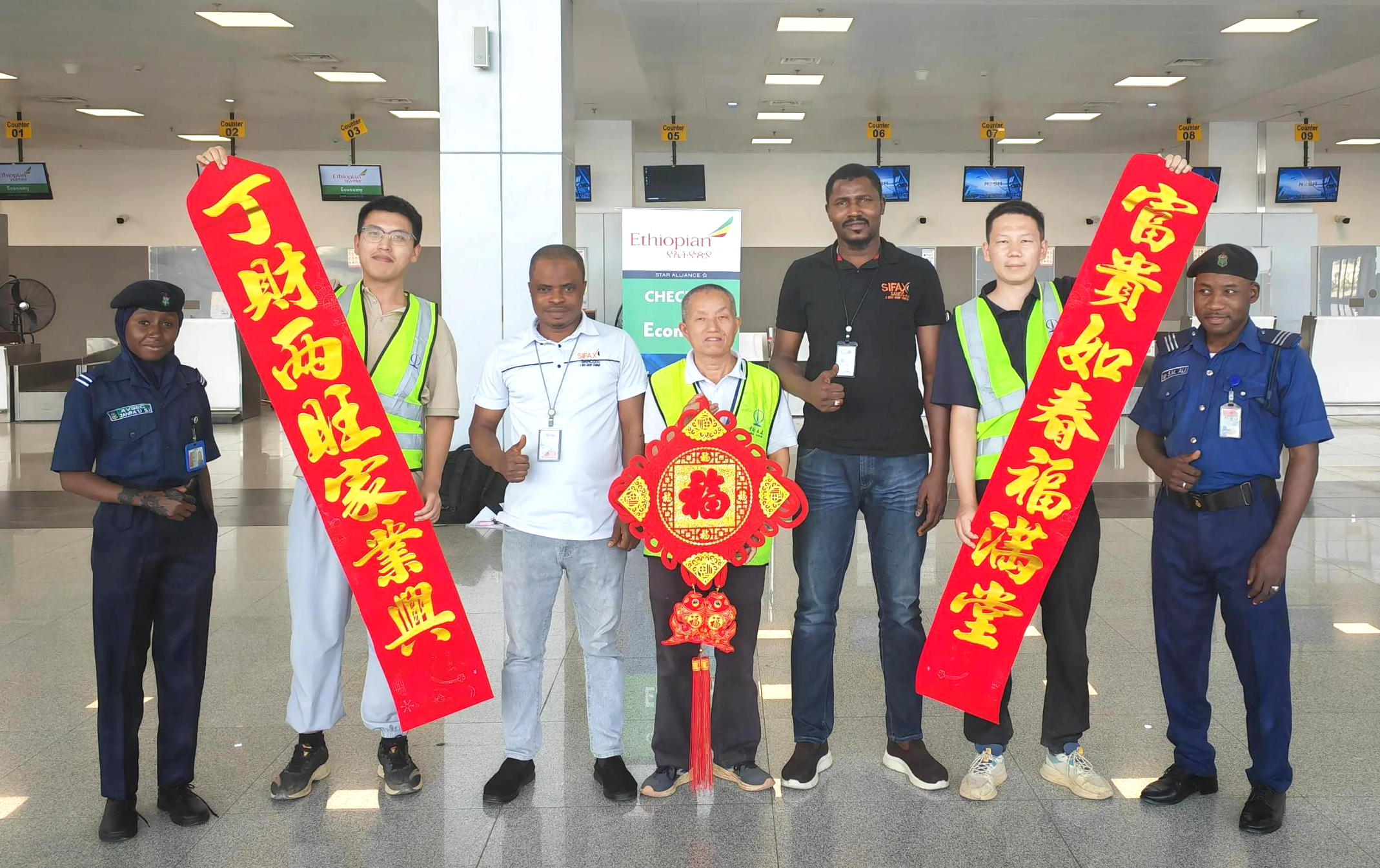 中国土木机场运营维保团队和尼日利亚方业主共贺佳节。何 罗 摄 |  |