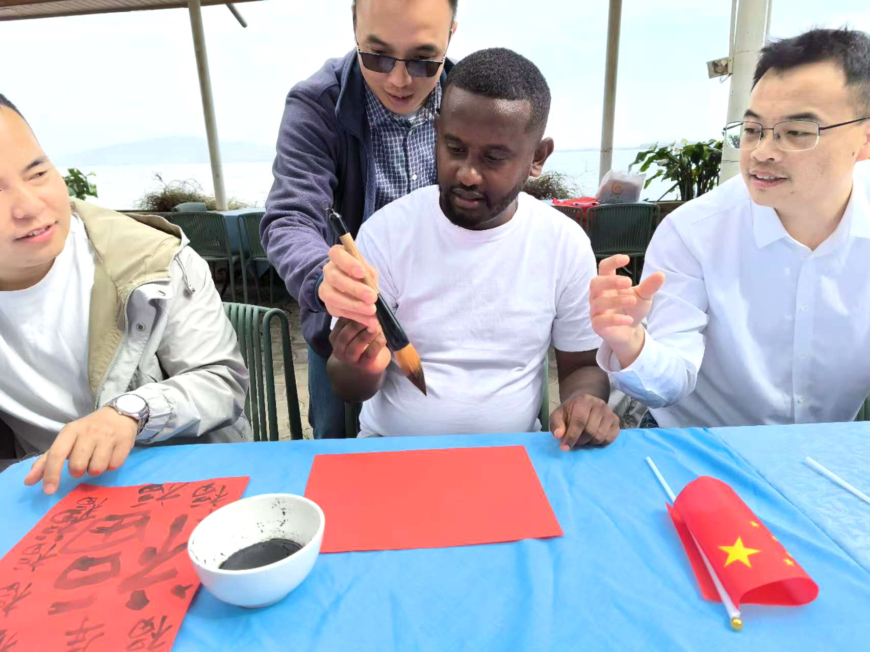 中铁二十四局安徽公司埃塞俄比亚项目部邀请埃籍员工参与写福字、贴春联、挂灯笼等迎新春文化活动。田 翔 摄 |  |