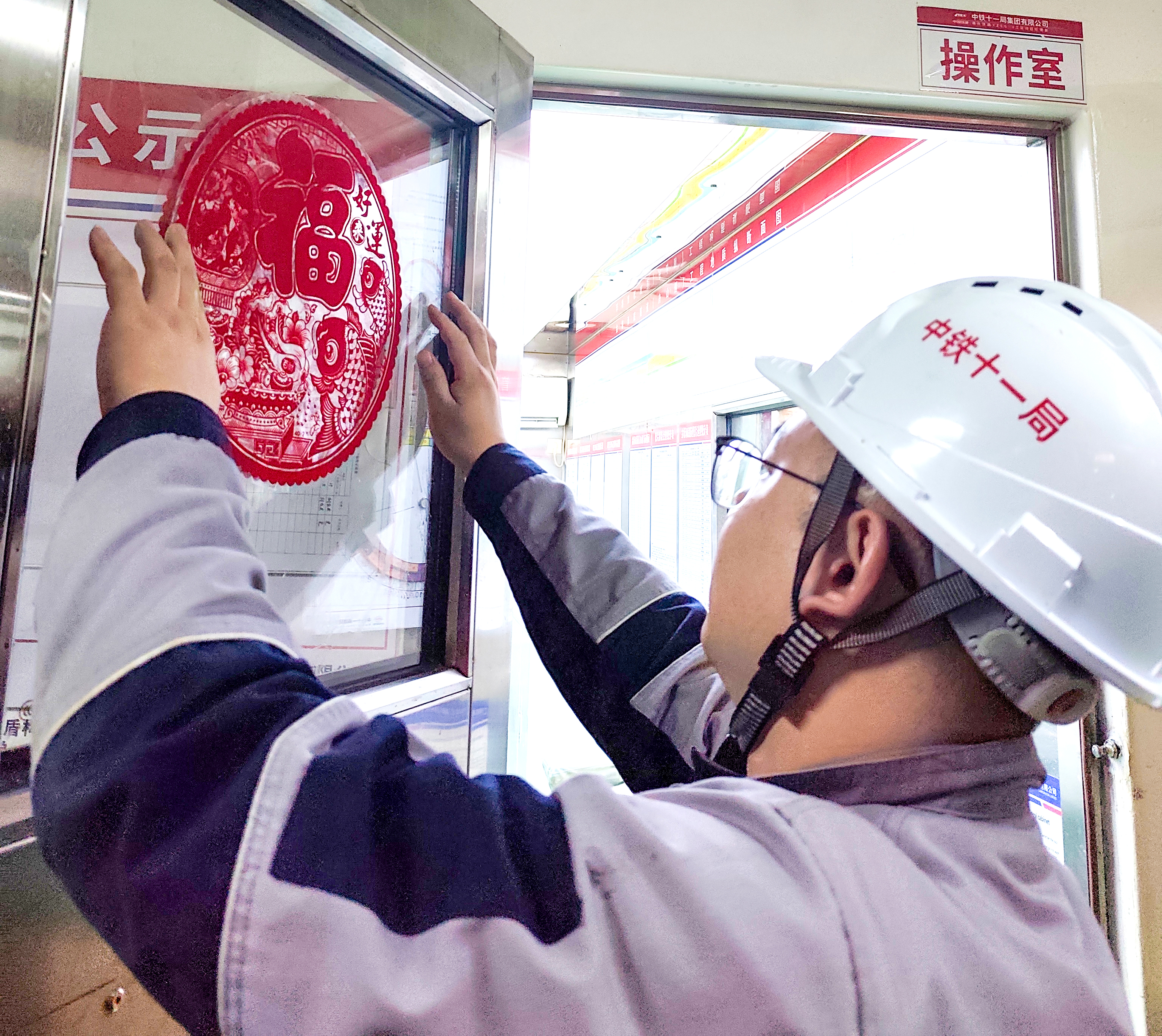 中铁十一局建设者为“定海号”盾构机操作室贴福字。陈 星 摄 |  |