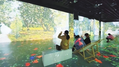 “莫奈的工作室里有一处花园,我们把它以实景的方式还原了出来。”鲲集文化策展经理何婷婷告诉记者,“幸会莫奈”沉浸式光影展共分为三个部分呈现。静态区域从墙面作品出发,以时间线串联艺术作品,通过对莫奈作品的介绍和解析,让观众提前了解莫奈的基本生平和经典画作,提高虚拟现实区和沉浸式空间的体验感。