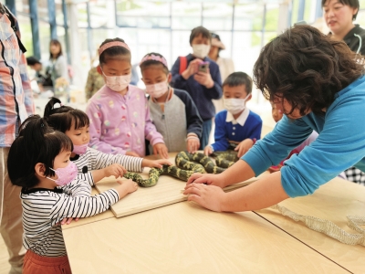 “这个蛇皮摸起来像塑料,闻起来有点臭臭的。”隔壁的自然教室内,孩子们一边听讲解员的介绍,一边观察,一边触摸,兴趣盎然。这里设有科普读物和绘本阅读区、自然收集物观察体验区等,还将开展集体验、参与、研习于一体的自然教育课程与亲子活动。