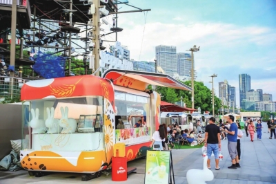 本报讯(记者 徐维晨)浪漫的江边、粉色的沙滩、热情的音乐、鼎沸的人声……即日起,城市沙滩嘉年华在北外滩国客中心拉开帷幕。作为此次活动的亮点,数百平的粉色沙滩被“搬”到了现场。在沙滩营地区域,精酿啤酒、烘焙小食、遮阳伞、沙滩椅、泡泡泳池成为游客的打卡地。
