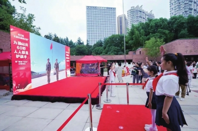本报讯(记者 曲姗姗)9月16日是第23个全民国防教育日,虹口区在中共四大纪念馆国旗广场举办了“为国站岗护旗60秒,人人都是护旗手”暨“国旗下成长”主题活动,见证军人的岗位,体验哨兵的坚守,通过3个小时的陪伴,带着广大市民群众特别是青少年儿童,感受祖国海域的辽阔壮美,与中国人民解放军哨兵一起守卫碧海蓝天,为家国永安贡献一份力量!区委常委、区委宣传部部长吴强,区委常委、区人武部政委刘辽军出席活动。