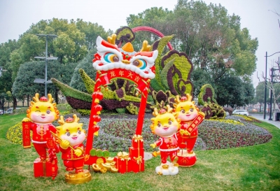 虹口街头有“龙”出没 互动阅读 春节临近,虹口的街头绿地中出现了不少“龙的身影”。它们或憨态可掬、或风姿翩跹,不仅为城市街头注入勃勃生机,也传递着喜庆祥和的节日祝福。龙在中国传统文化中是祥瑞与繁荣的象征。在甲辰龙年到来之际,不妨踏上寻龙之旅,去邂逅那些隐藏在城市街头的神兽,感受它们所寄予的美好期望吧。 图为长治路武昌路花坛。 杨伯荣摄