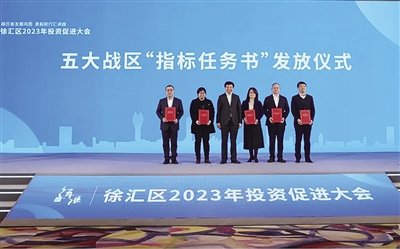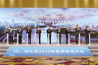 2023年首个工作日,徐汇区举办了2023年投资促进大会暨重大项目签约仪式,17个重大项目集中签约,新一轮21家“投资促进合作伙伴”现场也进行签约,五大战区领取新年任务书、誓师新征程。徐汇区委书记曹立强,区委副书记、区长钟晓咏,区人大常委会主任李新华,区政协主席黄冲等区四套班子领导,市住建委副主任、市“一江一河”办常务副主任张永刚, “徐汇滨江共建共治联盟”发起单位、成员单位,部分重点企业、专业机构及业主单位,徐汇区有关部门出席活动。