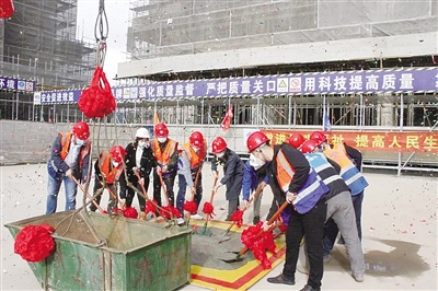 2020年9月19日正式开工后,施工团队紧锣密鼓进行现场建设,攻克了“临时用地小、基坑开挖深、施工部署难”的现场施工难题。2021年3月,桩基施工完成;2021年7月,基础及底板全面开始施工;2021年10月,基础及底板全部施工完成;2022年1月,地下结构施工完成;2022年11月28日,2号楼主体结构封顶;2022年12月下旬,全面实现主体结构封顶。