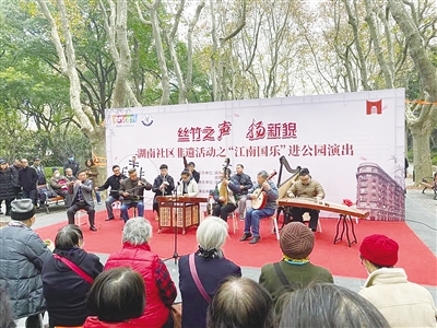 目前,孙文妍教授带队的上海国乐研究会也入驻湖南街道馨苑党群服务中心,每周排练,每年到周边小区和商务楼宇开展“江南丝竹”演出、普及赏析讲座等活动。同时和街道合作,把江南丝竹送进爱菊小学民乐队,让更多的孩子学会欣赏和演奏,成为传承非遗文化的主力军。