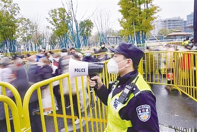 作为每年徐汇新春游的重头戏,也是防疫转段后首次龙华古寺迎新祈福活动,徐汇警方充分研判大客流风险,在前几年的成功经验上因地制宜地不断优化调整安保措施。1月21日(除夕)至23日(年初二)活动期间,徐汇警方对龙华西路(天钥桥路—龙华路段)开展交通管制,在南北两侧路面搭建蛇形通道作为人群“蓄水池”,并利用龙华西路南侧人行道设置2个“节流阀”,以龙华西路123号出口区域为“分流阀”,执勤民警根据现场指挥部指令和人流聚集情况,采取截流、限流、分流措施。当蛇形通道区域人流溢出时,警方还将视情先后启用两个路段作为备用“蓄水池”,引导游客绕行至天钥桥路、龙华路两侧向龙华寺方向排队。“今年,我们优化了客流引导措施,将原先天钥桥路单一一侧入口通道改为天钥桥路、龙华路两侧同时开启的双入口通道,”徐汇公安分局大型活动安全保卫办公室负责人李润介绍,“通过‘节流阀’和‘蓄水池’等措施,最大限度减少后续人流对前方队伍行进安全的影响,避免踩踏等意外事件发生。”