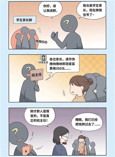 防范提醒:群聊管理员应严格进行群管理,不能让身份不明的人混入群聊。遇到群聊里汇款转账要求时,家长也要通过电话或者当面核实等方式与校方取得联系,若遭遇网络诈骗,保留好转账的账户明细和聊天记录,及时报警。