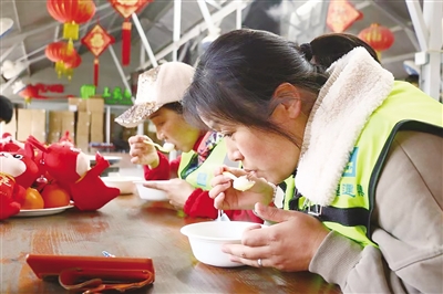 元宵节来临之际,漕河泾街道社区食堂准备了一份元宵祝福送给辖区的长者们;华泾镇在“侨之家”开展“钱兔似锦,泾彩元宵”活动,组织侨台联同胞们相聚一起包汤圆;滨江建设者之家的工作人员不但品尝着甜美的汤圆,许多工友还迎来了新春第一个福字(如图2、3);龙华街道社区文化活动中心举办宝宝乐新年首场主题活动,带领小朋友们揉、捏、搓黏土汤圆,在游戏中学习元宵节的文化。