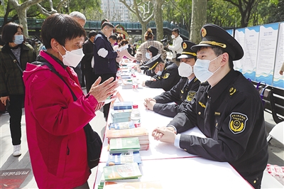 法律咨询、受理投诉、维权知识有奖问答,在活动现场,区商务委、市场监管局、区司法局、区公安局、区文旅局、区烟草专卖局、区消保委,房地产经纪行业协会、市电子产品维修服务行业协会,徐家汇商城集团、百胜(中国)、3M、泡泡玛特、尚品宅配等企业纷纷设摊,由专人“一对一”为市民宣传消费权益保护知识,解答在消费过程中遇到的问题,并接受各类消费投诉。