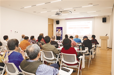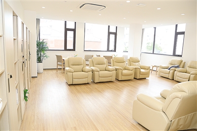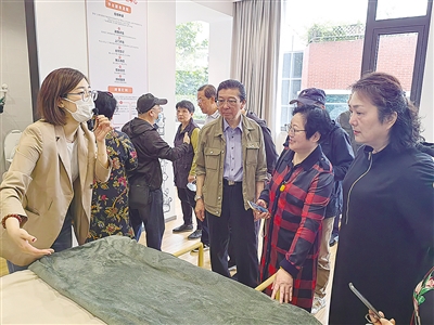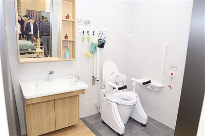 在公共会客厅,但见社区老年人正在制作钉子画“西瓜拼图”,一位阿姨得意地向大家展示成果,引来一片“闪光灯”;一旁适老化改造项目:橱柜、自动升降床,适合残疾人生活辅具乃至卫生间冲淋、洗漱、如厕等设备改造引起了大家兴趣,老记们纷纷驻足观望,有的还亲手触摸、调试,叫好声一片。瞧,那边十分热闹,吧台前咖啡机、电冰箱、饮料柜等商品琳琅满目,宛如跨入了一个现代家庭,一位女老记还手扶一边的餐边柜手推小车,来打卡留念。