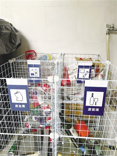 自2019年起,上海实施垃圾分类已近四年,按照四分类进行垃圾投放已经从生活“新风尚”变成了市民的一种良好习惯。干、湿垃圾、可回收垃圾(物)、有害垃圾,如果你认为垃圾只有这四分类,那可就错了。在位于徐汇区漕河泾街道漕东支路81号的实业大厦,光可回收垃圾(物)就在原有的“玻金塑纸衣”五分类的基础上,又进行了再细分,如瓶装水塑料瓶将进一步分为瓶盖、瓶身和包装标签三部分。作为商务楼宇生活垃圾分类的“样板楼宇”,那里的垃圾分类不止做到了“百分百”。