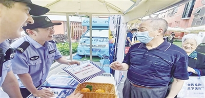 现场,民警还结合易拉宝和宣传单上的内容,向市民讲解各类常见电信诈骗手法和案例,加深市民对电信诈骗隐蔽性、危害性、手法多样性的认识,提醒居民群众一定要提高警惕,切勿相信“以小博大”“稳赚不赔”的“好事”。