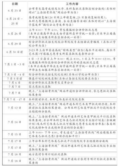 据上海市教育考试院,2023年上海市普通高等学校招生录取工作日程公布。