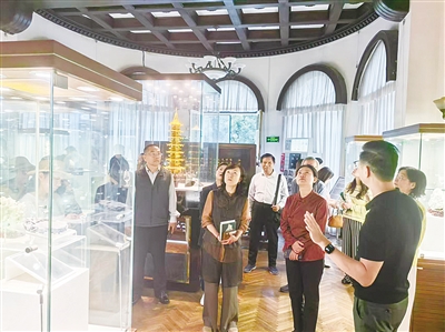 发布会后,与会人员共同参观了上海工艺美术博物馆(如图),近距离欣赏刺绣、灯彩、面塑、玉雕、漆刻等工艺美术珍品,体会海派艺术的精巧与雅致。各街道侨界人士还参与了非遗珐琅制作体验活动。