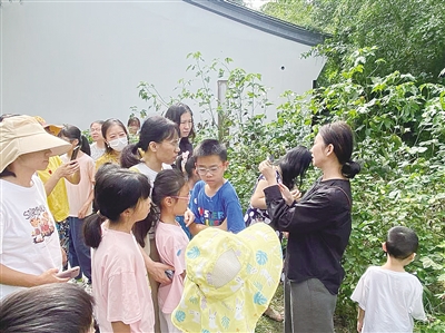 跟随黄道婆纪念公园的专职讲师,孩子们仔细寻找着偶挂枝头的花朵、等待绽放的棉桃、刚被雨水冲洗过的“棉朵朵”等。“上过太空的棉种C41,有着更适应环境的特性,这片棉田里有10多种棉,大家可以看看它们的不同。”当孩子们轻轻触摸柔软的棉朵时,书本上的棉有了真实、温柔又富有韧性的触感。