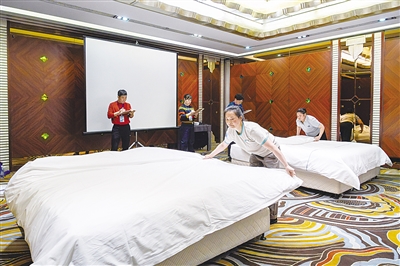 “技动徐汇 盟创未来”徐汇区第八届文旅行业技能大赛颁奖仪式日前在西岸国际会展中心举行。活动现场陈设了酒店主题客房、中西式创意摆台等,并展示了创意短视频及“徐汇星推官”风采。