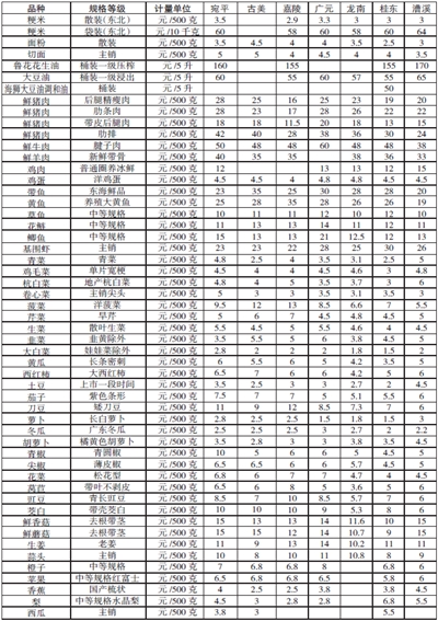 徐汇区主副食品价格一览