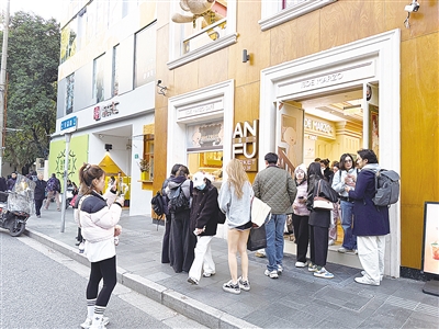 傍晚的武康路、安福路街区内,穿搭反差尤为鲜明。武康大楼前,既有身着风衣年轻男女,也有身穿薄款羽绒服和保留秋装的姑娘,在夕阳下留下与武康大楼的合影;安福路上,还有身着运动服配上短裤的女孩,在行人间穿梭,坚守着“美丽冻人”;潮牌店前,各色男女或是厚实外套叠穿毛衣,袖口露出的针织边既保暖又显层次,完美契合上海街头的松弛感美学。
