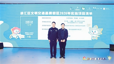活动现场集中展示了徐汇区以硬件提升推动文明交通建设的坚实成果,同时发布2026年网络完善类、空间融合类、品质提升类、慢行精品区创建共4大类13个文明交通实事项目清单。