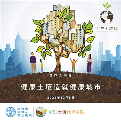 12月5日是世界土壤日,这一节日由联合国大会于2013年确立,旨在唤起全球对土壤健康的重视与守护。2025年世界土壤日的主题为“健康土壤造就健康城市”,聚焦城市化进程中土壤面临的硬化、污染等挑战。在沥青、建筑和街道之下,如果土壤能保持渗透性且被植被覆盖,则可以吸收雨水、调节温度、储存碳并改善空气质量。但一旦被水泥封死,土壤便失去这些功能,使城市更易遭受洪涝、高温和污染的威胁。因此,土壤日呼吁所有人,从政策制定者到公民,在根本上重新审视城市空间,共同打造更绿色、更具韧性、也更健康的城市。