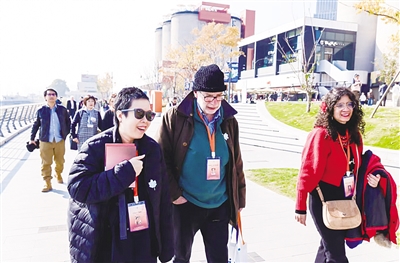 来自全球各地的诗人纷纷沉醉于上海西岸的晴日美景与诗意氛围中。哥伦比亚女诗人玛丽亚·戈麦斯·拉拉鬓边插着鲜艳红花,身着特色民族服装盛装出席,这是她首次到访中国,更是第一次在游船上参加诗歌节,她穿梭在活动现场,不时驻足欣赏西岸风光,直言上海多姿多彩,上海西岸更是松弛感满满,“到处都有诗意流淌”。德国诗人马蒂亚斯·波利蒂基第一次来到徐汇滨江,漫步在洒满阳光的滨江步道上,望着壮阔澄澈的黄浦江景致,感受着多元文化交融的氛围,不禁赞叹上海西岸充满活力,是感受上海海派文化的“必到之地”,“在这里能找到文化共鸣,是一个充满魅力的地方”。
