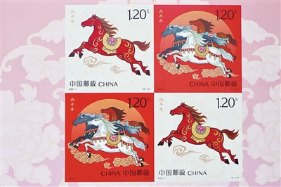 《丙午年》特种邮票,一套两枚,图案名称为“驰跃宏图”和“万骏臻福”,分别以“腾跃新时代”为核心意象,展现了一匹红马奔驰于祥云之上,四蹄生风;以“万马奔腾,驰骋千里”为核心意象,展现了三匹奔跑的骏马,寓意奔腾不息、共同奋进。