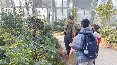科普员向孩子们介绍濒危植物