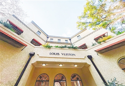 值得一提的是,这栋西班牙拉毛洋房本身就足够吸睛。2024年初启动修缮,因为工艺考究、体量较大,直到当年六七月份才完成外立面翻新,之后又进行了草坪绿植维护,才有了如今完整又精致的模样。它开面大、外立面直面街道的设计,在武康路的老建筑中十分少见,没举办活动时就已经成为路人争相拍照的“网红”,如今搭配LV的限定主题,更是人气爆棚。