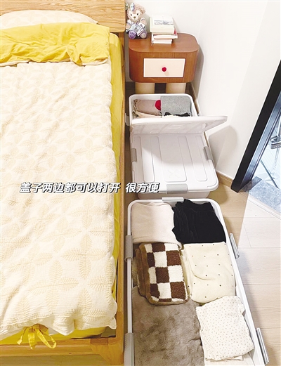 对小户型来说,这简直是收纳神器,充分利用了本该浪费的床底空间。床底收纳箱可以用来收纳一些换季的衣物。我家主卧1.8×2米的床,底下刚好可以放下四个收纳箱,夫妻两人的冬季衣服完全够装。甚至还能可以防止猫钻床底。选择这种收纳箱最好要有滑轮的配置,大大增加了拿取的方便程度。