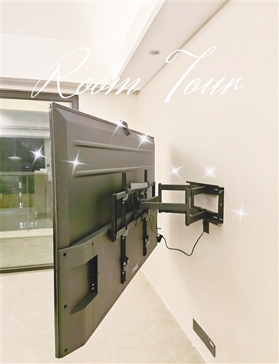 家里有电视机的朋友,一定要加点钱安装可以旋转的支架。亲身体验后特别好用。装了这个支架,这样可以让电视在客厅、餐厅、阳台间自由转动。也就是说,你不仅在客厅里能坐看电视,在餐厅用餐或者在阳台晒太阳,只需要把电视机支架拉出来转到你想要的角度就可以。别小看这个设计,它让客厅不只是“看电视的地方”,会变成全家的互动核心区。真是先进又实用。