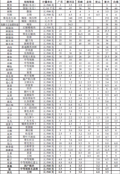 徐汇区主副食品价格一览