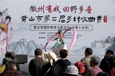 10月30日下午,“徽州有戏 田野乡音”黄山市第二届乡村戏曲节(总第十五场)暨全民国防教育主题活动走进黟县美溪乡美坑村。