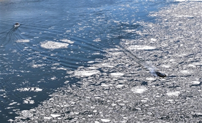 近日,随着气温下降,中俄界江黑龙江黑河段进入流冰期。