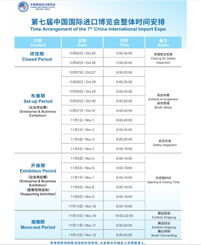 一、参加大会统一安排的第七届进博会的国家综合展、企业商业展、虹桥国际经济论坛、专业配套活动和人文交流活动等重大活动。