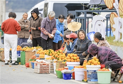 街口大桥农产品交易市场,果农在销售桔子