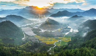 11月5日,晨雾缥缈,深渡镇定潭村下关湾生态农业园风光旖旎。 近年来,歙县依托区位生态优势,推动土地集中连片流转,统筹规划,大力建设高标准农田,着力做大做强菊花种植、蔬果设施农业等特色产业,推动农业产业转型升级,实现经济、生态和社会效益共赢,助力乡村全面振兴。 郑 宏/摄