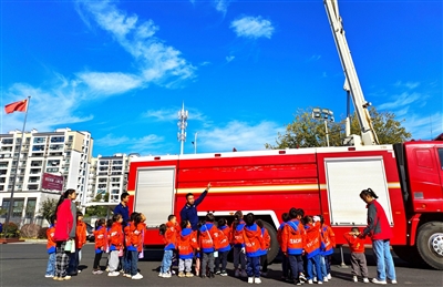 11月8日,歙县智慧星幼儿园组织幼儿走进歙县消防救援大队,开展“少年学消防,感知119”体验活动,通过观摩消防救援演练,学习常用消防设备的使用方法,培养少年儿童的消防安全意识。 吴建平/摄
