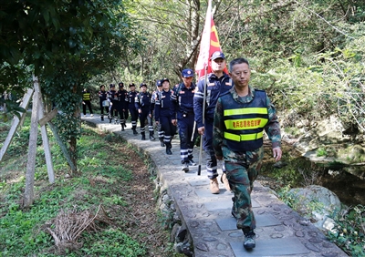 为进一步提高应急救援队伍的综合素质和救援能力,11月9日,休宁县老兵志愿者应急救援队在该县源芳乡开展野外体能拉练。30多名队员精神饱满,列队整齐,脚步铿锵有力,顺利完成了10公里越野训练,展示了应急救援队团队精神和良好的精神风貌。 武时化/摄