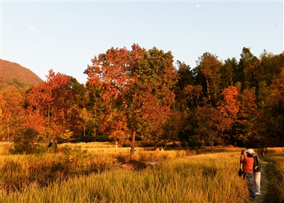 11月11日,游客在黟县塔川村游玩。