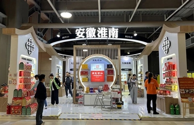 第七届进博会人文交流活动“中华老字号”展示区的安徽展台展览面积99平方米,展台以徽派建筑风格为设计元素,充分展现了徽派建筑及淮南的地域特色。此外,展台上还穿插展示了十多家代表淮南当地特色的老字号和非遗文化品牌,充分展现了淮南在经济、文化方面取得的累累硕果和蓬勃发展的态势。