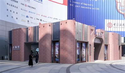 在第七届进博会主场馆中央广场西北侧,穿过一片红砖垒成的石库门,便进入第七届国际进口博览会上海馆,在这片300平方米的展区内,以“节点与链接 上海开放发展新动能”为主题,设置了“时代匠艺”“丝路精品”“未来空间”3大主题板块,通过上海老字号、新势力品牌、主理人品牌、进博好物、五大未来产业等展项,演绎了上海的传承与发展,融汇了上海的匠心与潮流,诠释了上海迈向未来、勇于创新的使命担当。