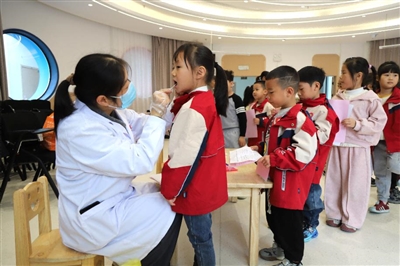 近日,歙县妇幼保健计划生育服务中心走进辖区幼儿园,开展“健康口腔 你我童行”民生实事涂氟护牙活动,为适龄幼儿检查牙齿健康、涂氟防蛀。当天,该中心共为辖区4200余名儿童涂氟。 姚龙仪/摄